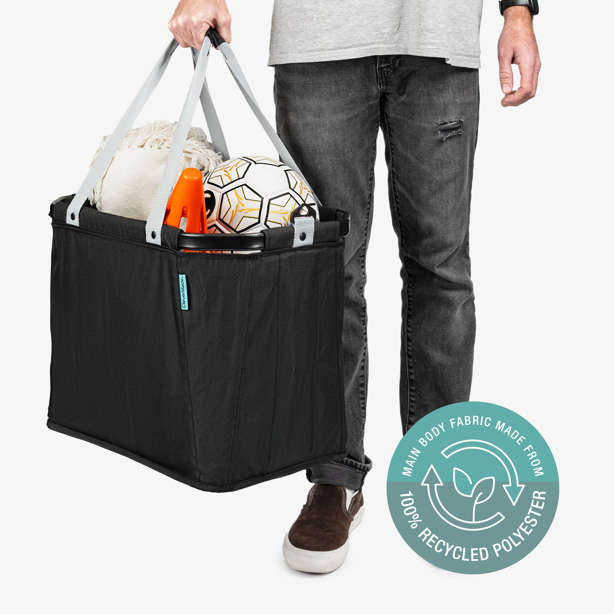 This tote folds flat when not in use so you can store it just about anywhere.