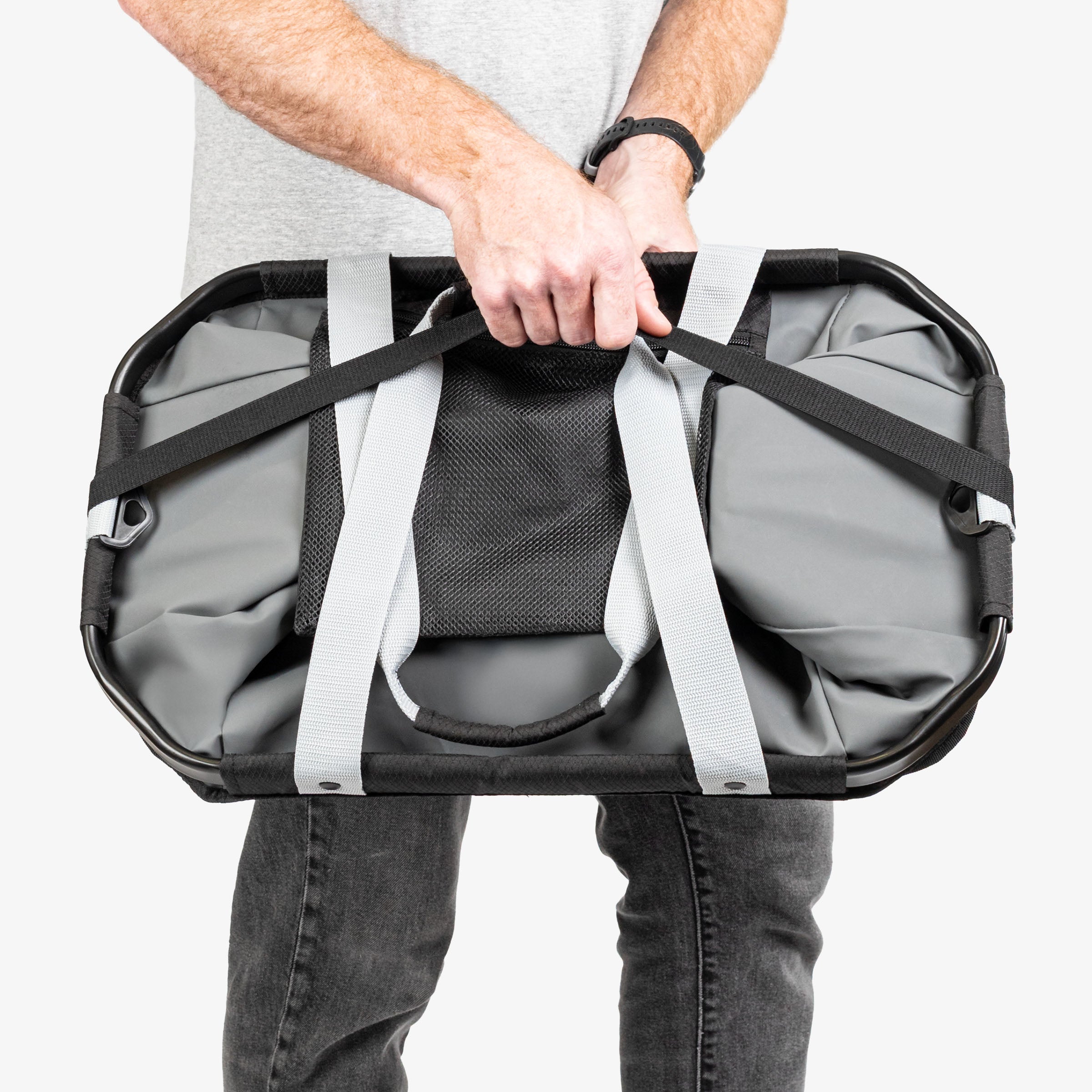 Our Gear Hauler Pro hauls a whopping 100 lbs and 55 liters. Hand carry with the built-in side handles or for heavier load carry this gear hauler over the shoulder.