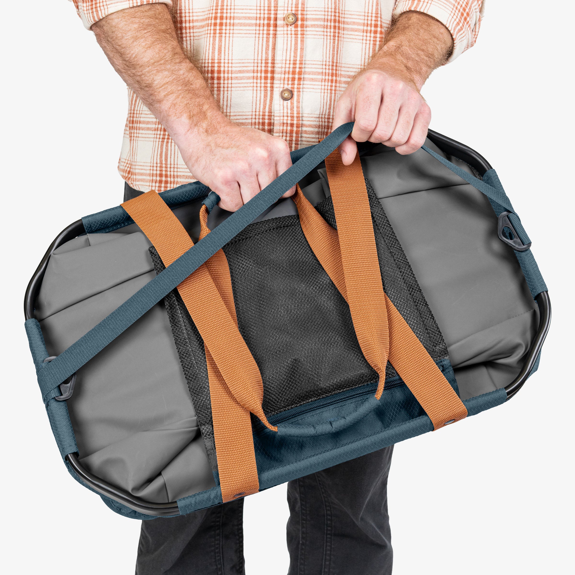 Reinforced aluminum top frame, SnapHinges and baseboard provide structure to our Gear Hauler Pro. Our tote stands on its own, making it perfect for packing. Easily grab and organize your gear - no more floppy bags.